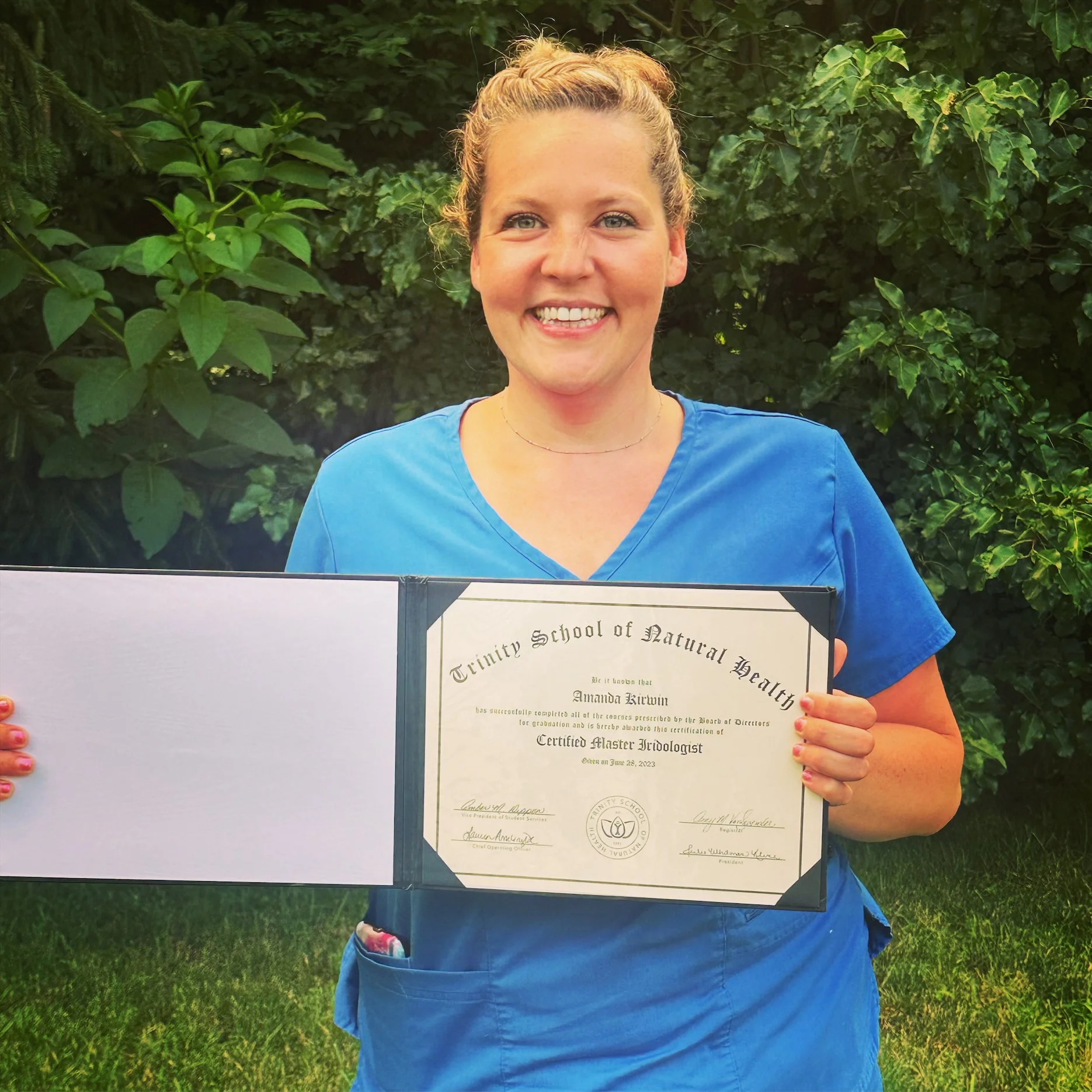 Amanda received her Iridology certification in June of 2023 from Trinity School of Natural Health. She is pending her board certification with the International Iridology Practitioners Association.